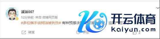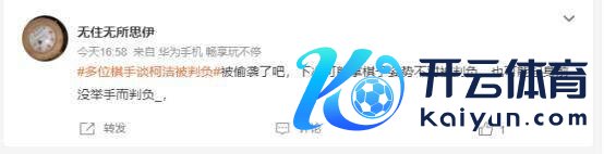 关于此次未必判负,打发平台上也有强烈的计议,话题一度登上打发平台热搜。有网友认为韩国棋手因为棋艺除外的要素举报,很不说念德,也有东说念主合计既然比赛规章定了就应该顺从。还有东说念主合计柯洁可能会因此在决胜局爆发。